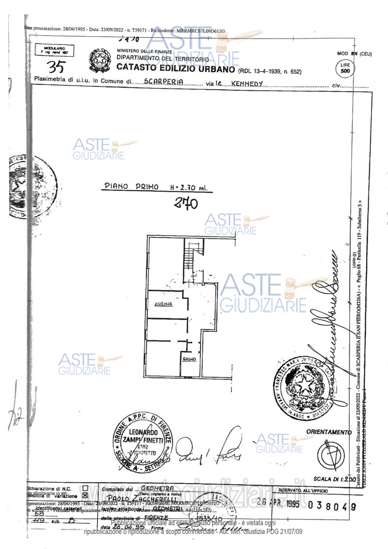 - Piena proprietà di appartamento di civile abitazione posto nel Comune di Scarperia viale J.F. Kennedy al civico n.212/c , ubicato al piano primo della superficie utile di mq.95; - Posto auto scoperto della superficie catastale di mq.31; - Area scoperta della superficie catastale di mq.40.