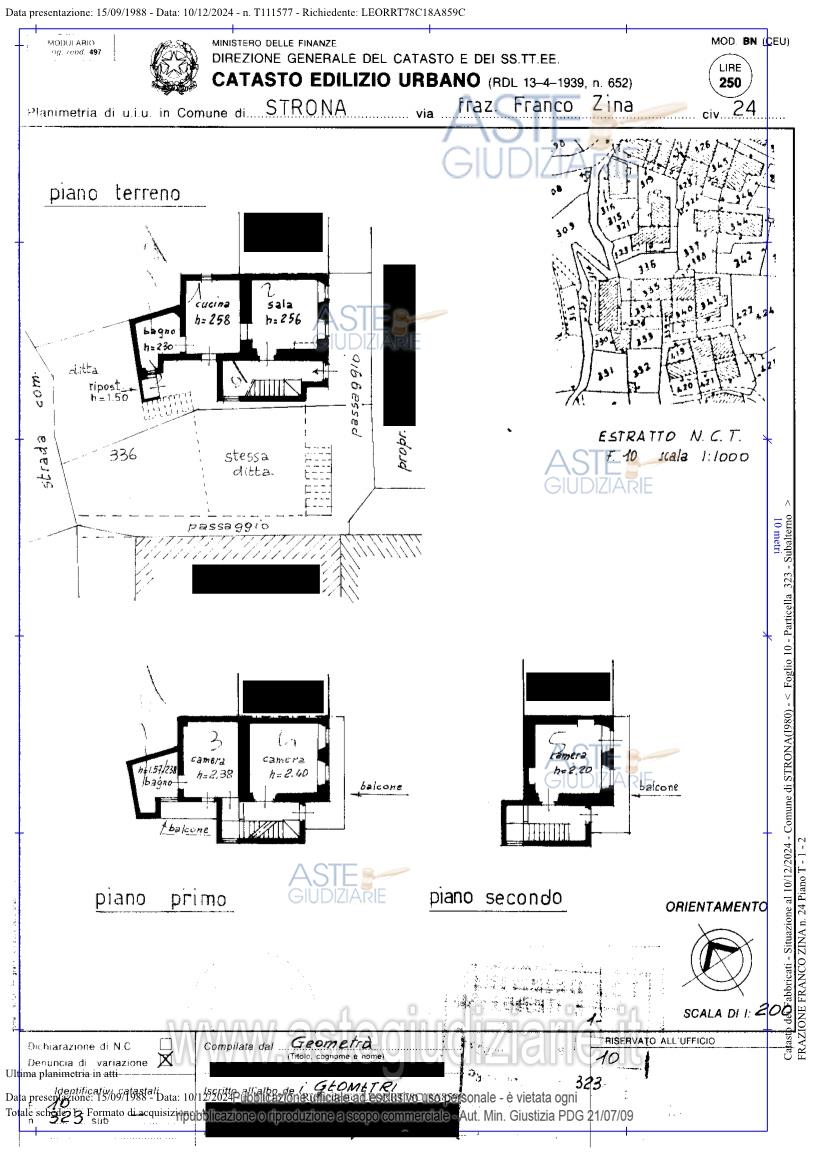 Fabbricato di civile abitazione elevato a tre piani fuori terra il tutto entrostante porzione di area contraddistinta al foglio 10 particella 323 del Catasto Terreni, nonché appezzamento di terreno adiacente e pertinenziale al suddetto fabbricato distinto con il mappale n.336 dello stesso foglio di mappa. Il fabbricato è composto da ingresso/vano scala, sala, cucina, bagno, ripostiglio esterno al piano terreno; al piano primo si trovano il disimpegno/vano scala, due camere da letto, un bagno e due balconi; al piano secondo si trova un’altra camera con balcone. Il lotto comprende anche altri terreni non identificabili con esattezza trattandosi di appezzamenti non recintati, distanti dall’abitazione invasi da sterpaglie e rovi.