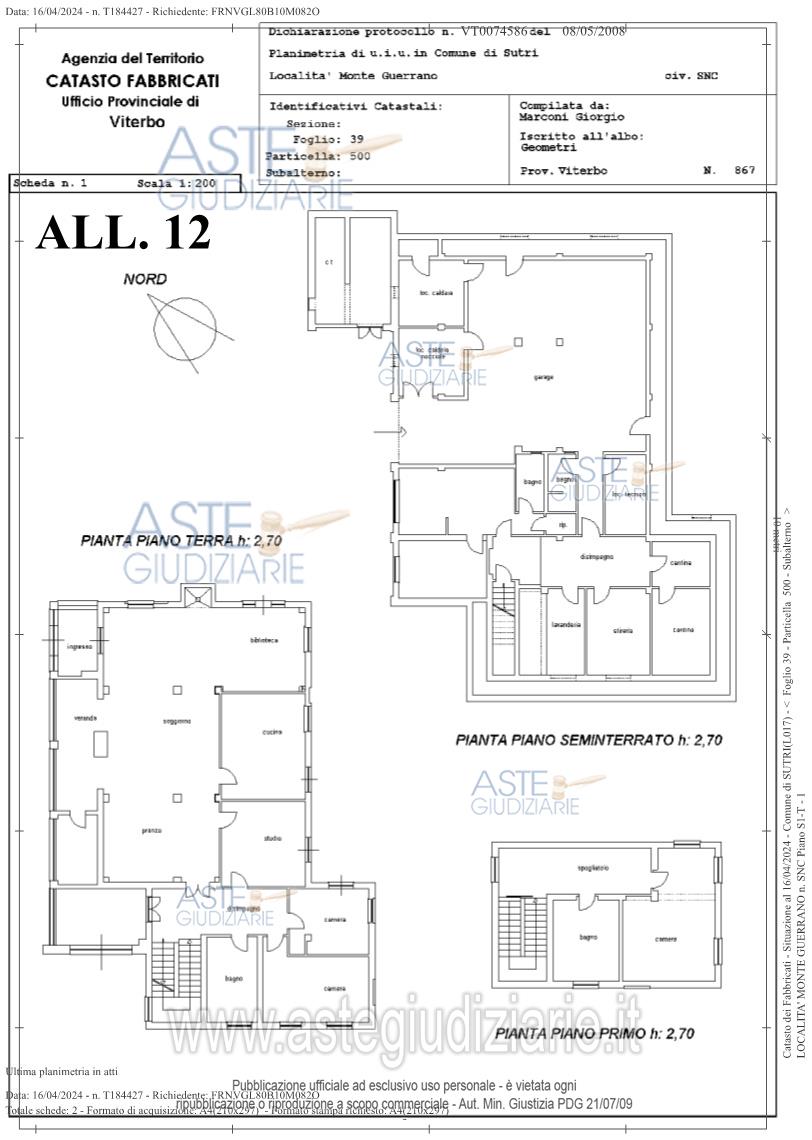 Diritti di piena proiprietà sulla intera quota su villa su tre piani con piscina e corte urbana circostante di pertinenza in Sutri (VT) Località Monte Guerrano - Via dei Boschi