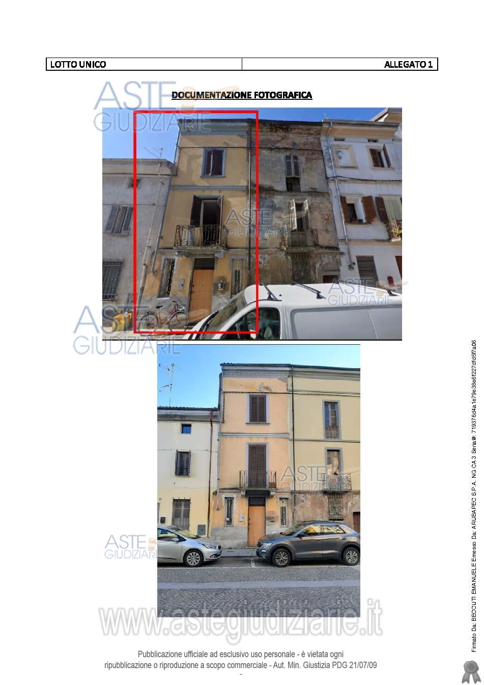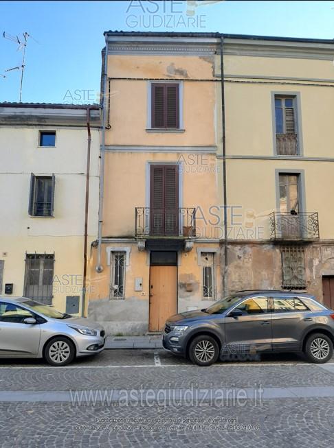 Fabbricato destinato a civile abitazione situato nel centro storico dell’abitato di Trino (VC), che si dispiega su tre livelli, oltre il sottotetto ed è accessibile dalla pubblica via con ingresso dedicato. Al primo piano vi è un disimpegno che smista al vano scala ed a una camera da letto collegata al balcone. Al secondo piano, vi è un disimpegno che smista al vano scala tramite botola/varco ed a una camera da letto.Il tutto come meglio descritto nell'avviso di vendita che qui integralmente si richiama.