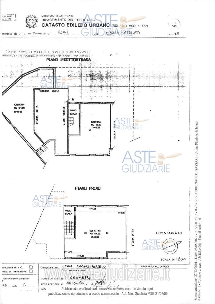 Intera proprietà abitazione sita in Usini, alla Via Giacomo Matteotti n.15, su tre livelli, censita al NCEU del Comune di Usini al foglio 11, mappale 527, sub.6, cat.A/3, vani 8. Sussistono irregolarità catastali e difformità edilizie come descritto nella perizia cui si rimanda.
