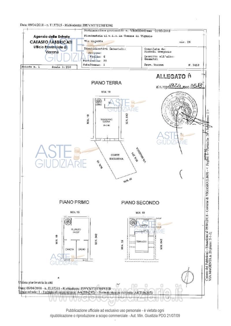 LOTTO UNICO - In Comune di Vigasio (VR), frazione “Forette”, in Via Magenta 26, piena proprietà di abitazione indipendente in un edificio tipo “case rurali in linea”, disposta su tre piani (terra, primo e secondo) con corte antistante.