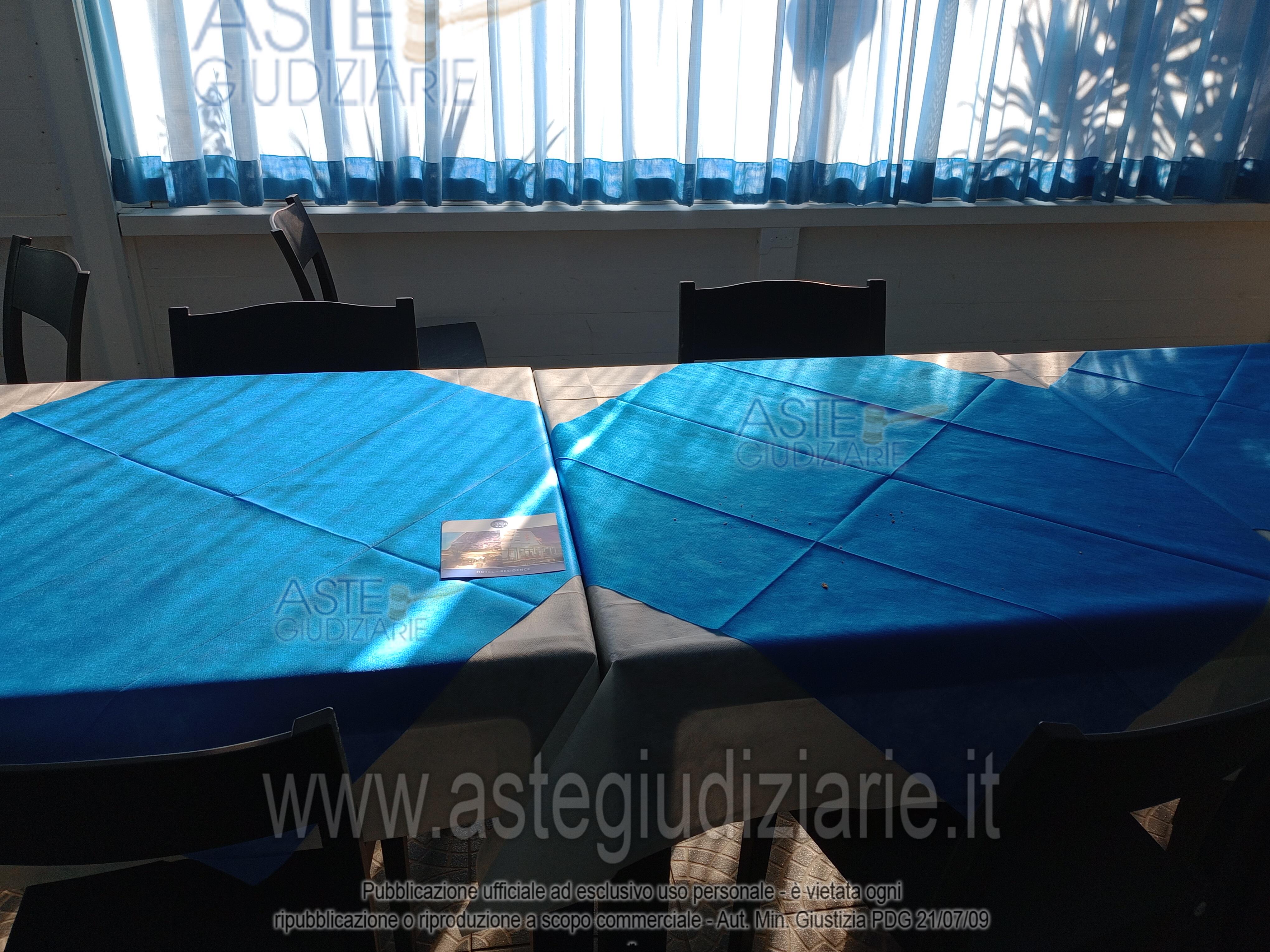 Colonna portapiatti N. 27 sedie in plastica e n. 15 tavoli Tende da interno in tessuto ignifugo Spremiagrumi Piatti piani 4*12, Piatti frutta 4*12, bicchiere fiore 36*12, 2 casseruole, 2 padelle, cucchiaini e forchette Distributore di cereali doppi Posateria varia Graticole per arrosticini e carne Rompighiaccio 150W Forno a gas 7GN 2/1 completo di basamento e cappa parete inox, addolcitore N. 2 lavatrici da kg. 10 alim. elettrica 3*380v e gettoniere N. 2 essiccatori da kg. 10 alim. elettr. 3*380v e gettoniere Cucina 6 fuochi marca Baron potenziata