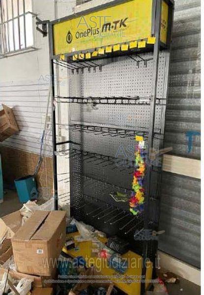 scaffalature, espositori per merce comprensivi di mensole e/o ganci appendi prodotti
