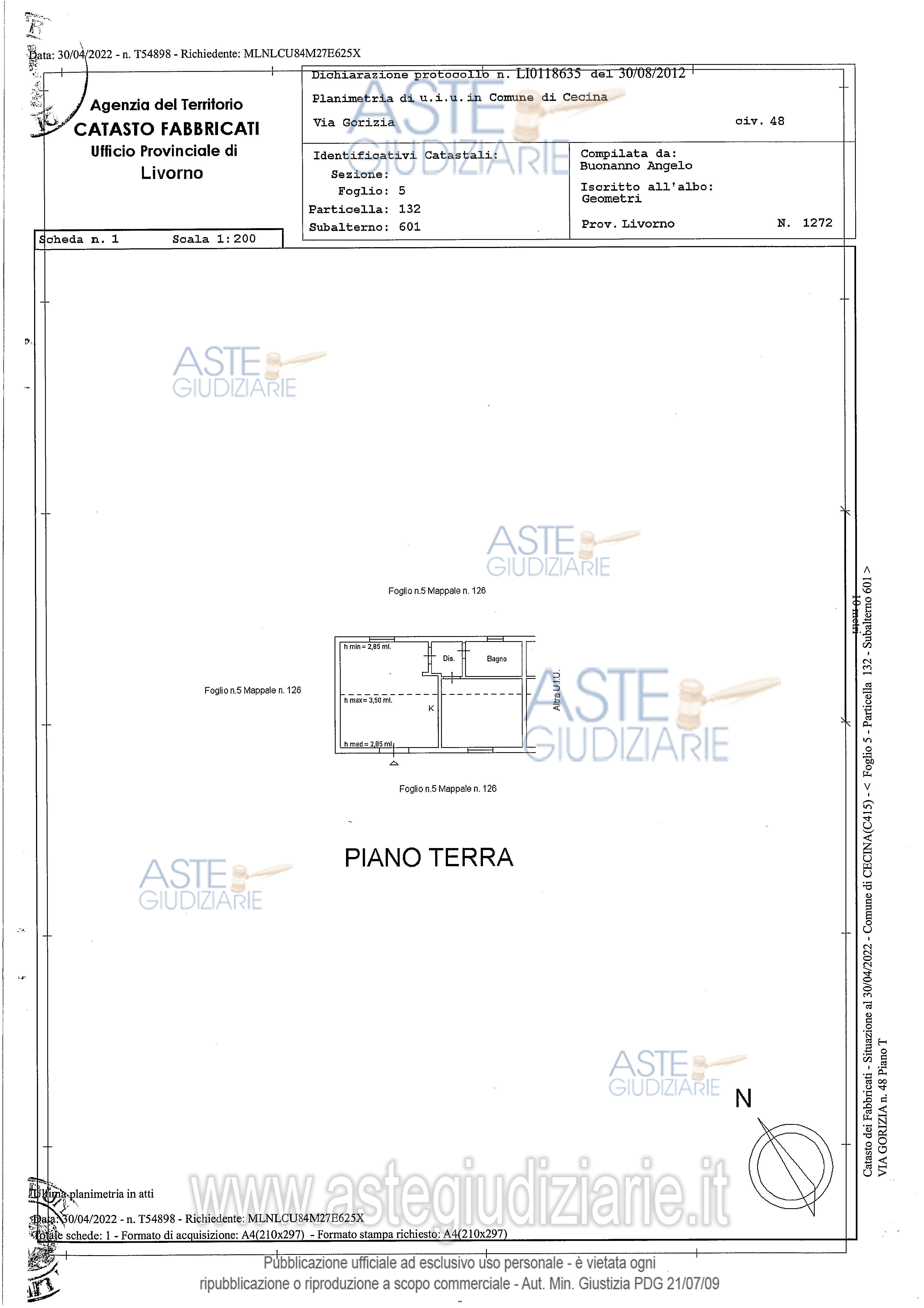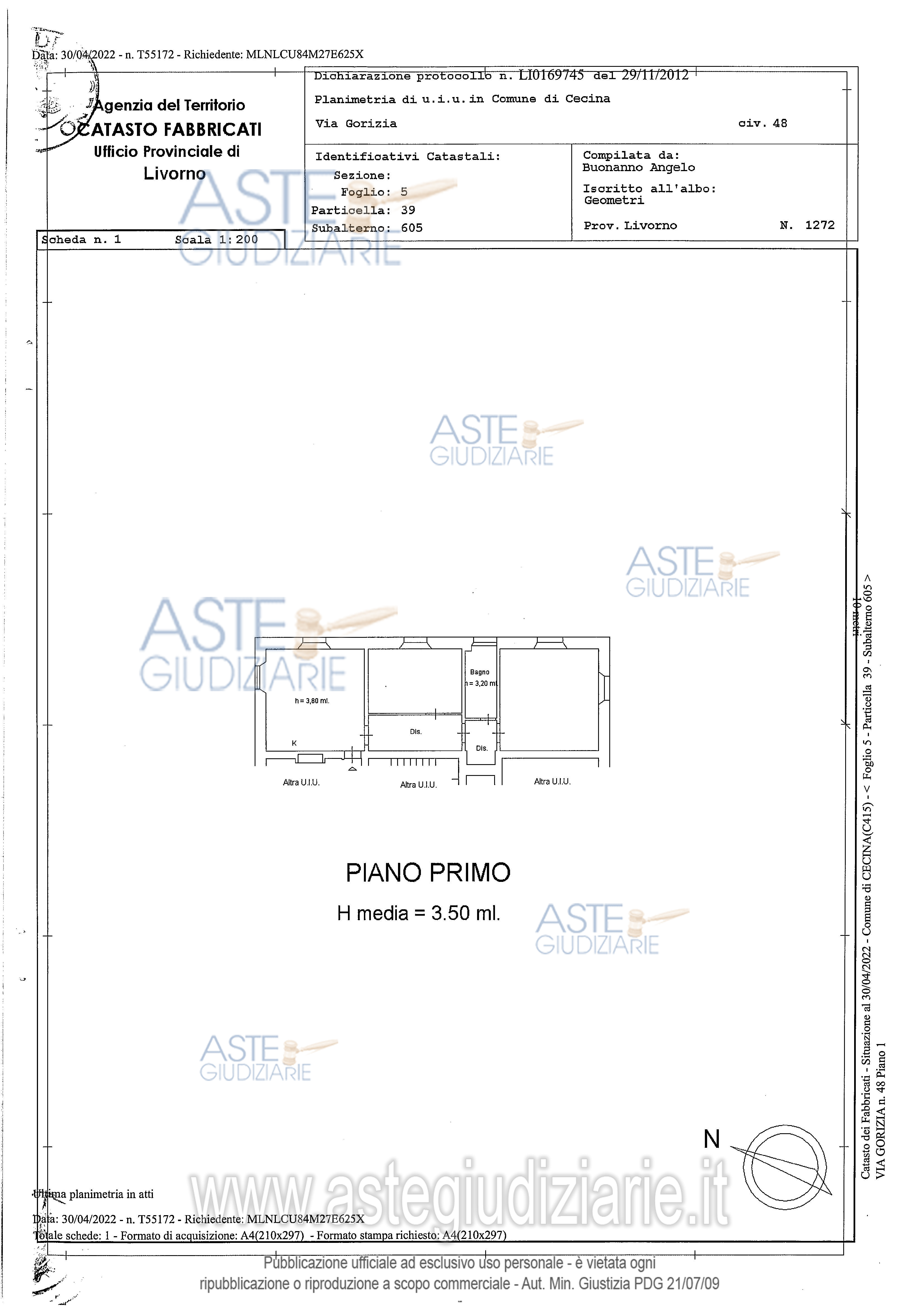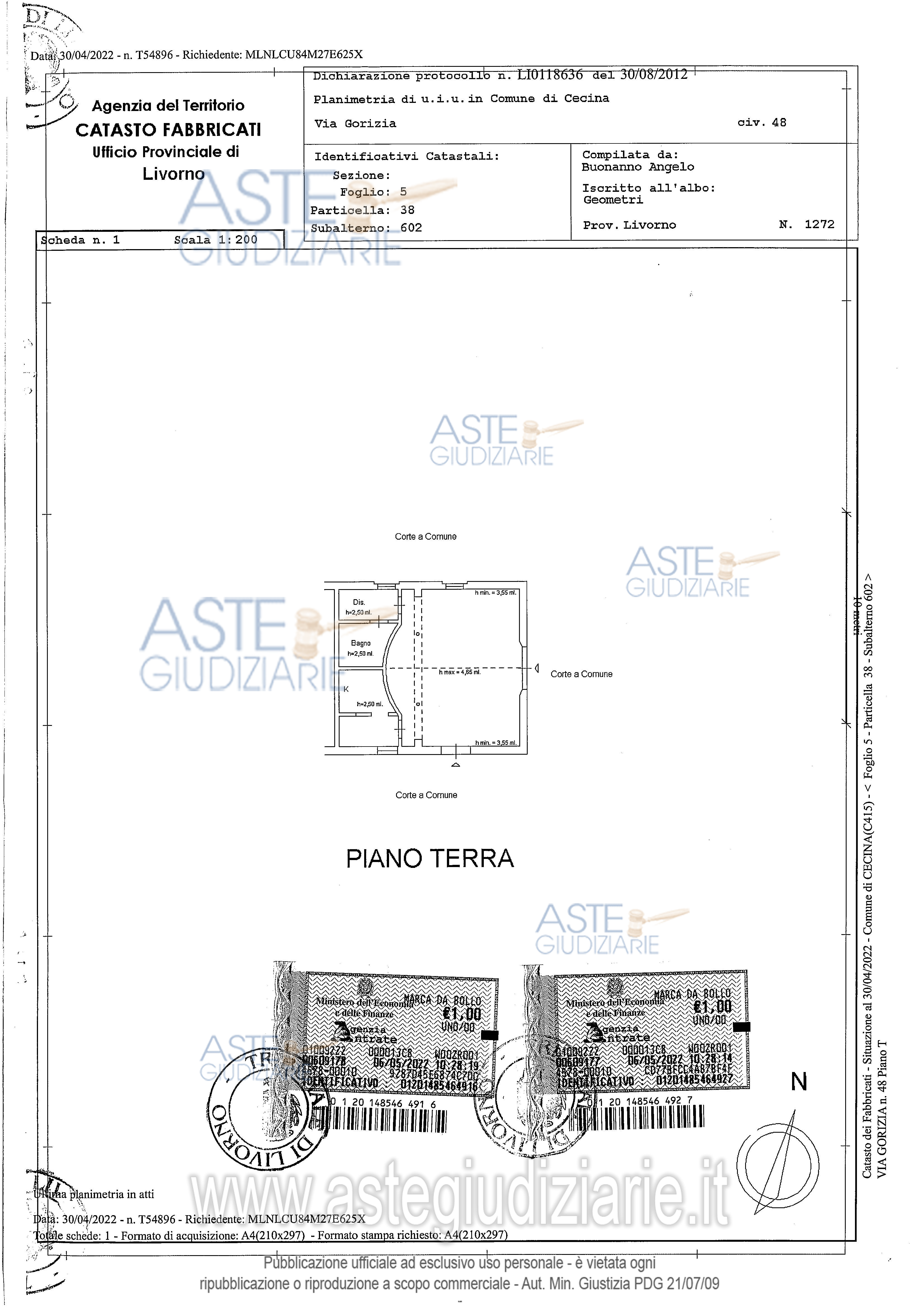 Attenzione: Non è dovuto alcun compenso (né a titolo di intermediazione, né per vedere l’immobile, né per ricevere istruzioni sulle modalità di presentazione dell’offerta, né a nessun altro titolo), se ci si rivolge a persone incaricate dal Tribunale (custode, professionista delegato, curatore, società incaricata di gestire la vendita). La pubblicità relativa a questo bene immobile, venduto dal Tribunale nella procedura indicata, potrebbe essere inserita su portali immobiliari, anche da altri soggetti non incaricati dal Tribunale. Se l’interessato all’acquisto si rivolge a questi ultimi, potrebbe essergli richiesto di pagare spese o compensi di mediazione o consulenza.