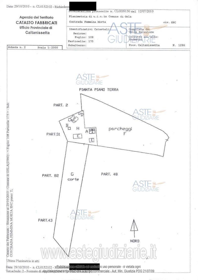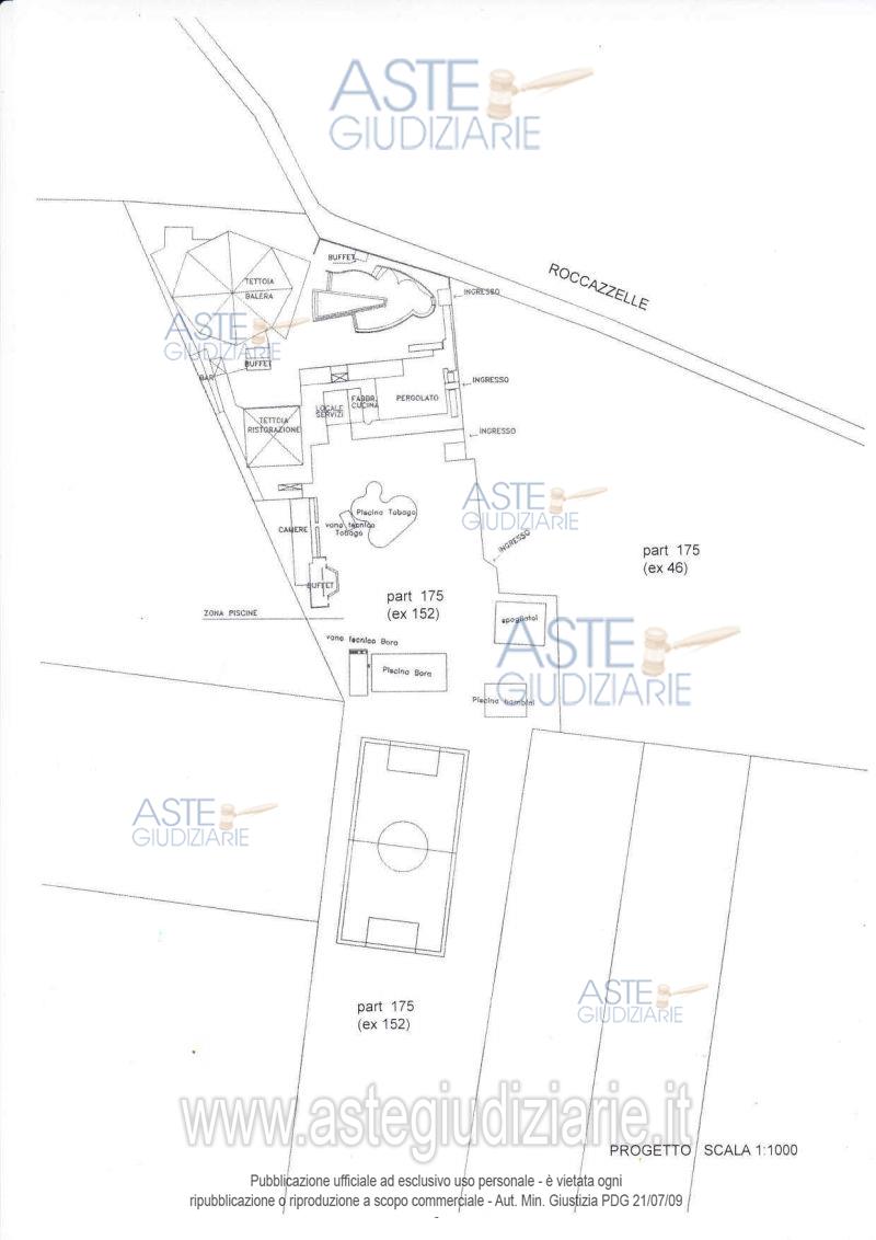 186/192 proprietà complesso immobiliare sito in Gela c.da Femmina Morta, adibito ad attività ricreativa, con piscine, area parcheggio, solarium, verde attrezzato, camere, servizi, di mq. 25.074