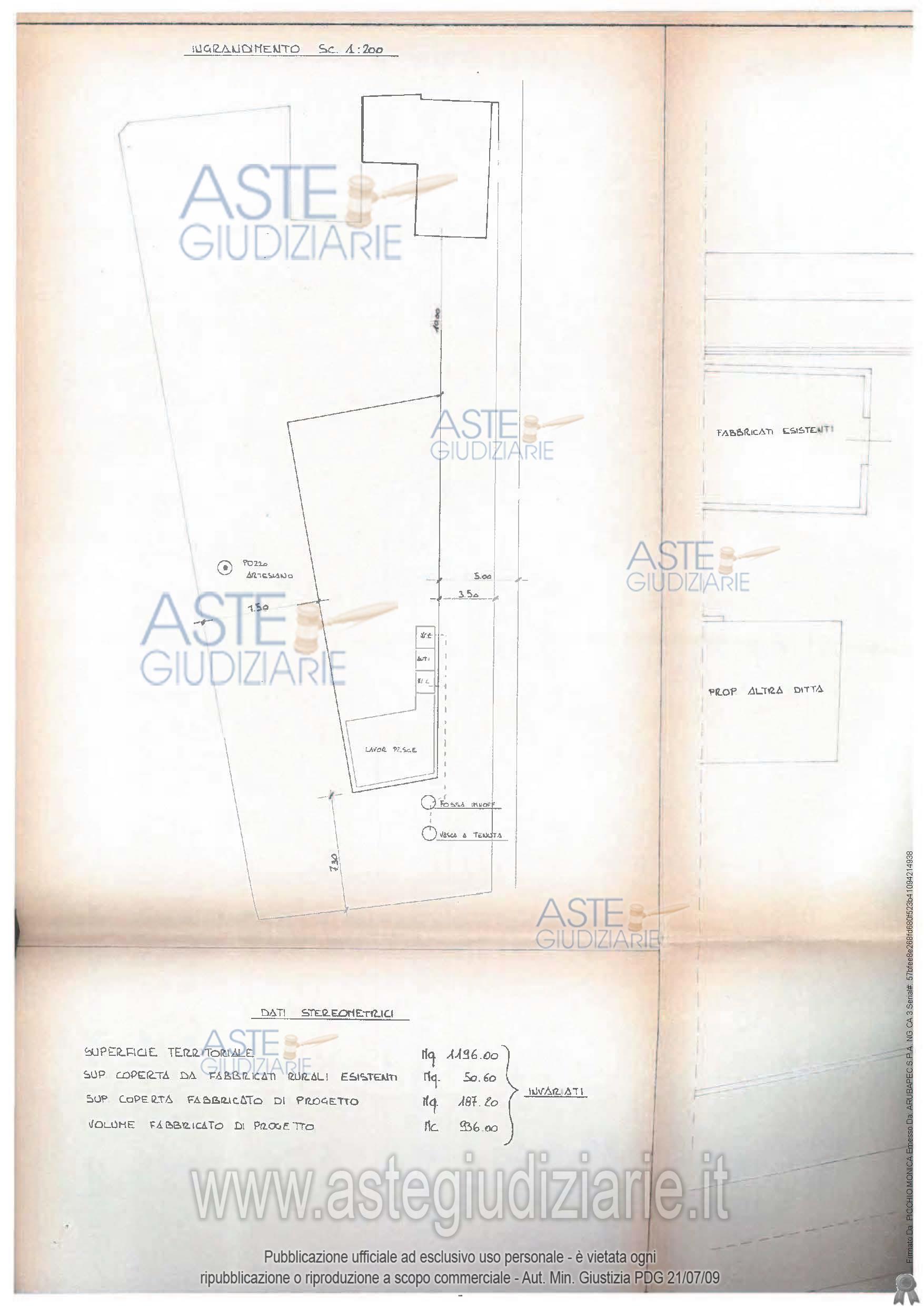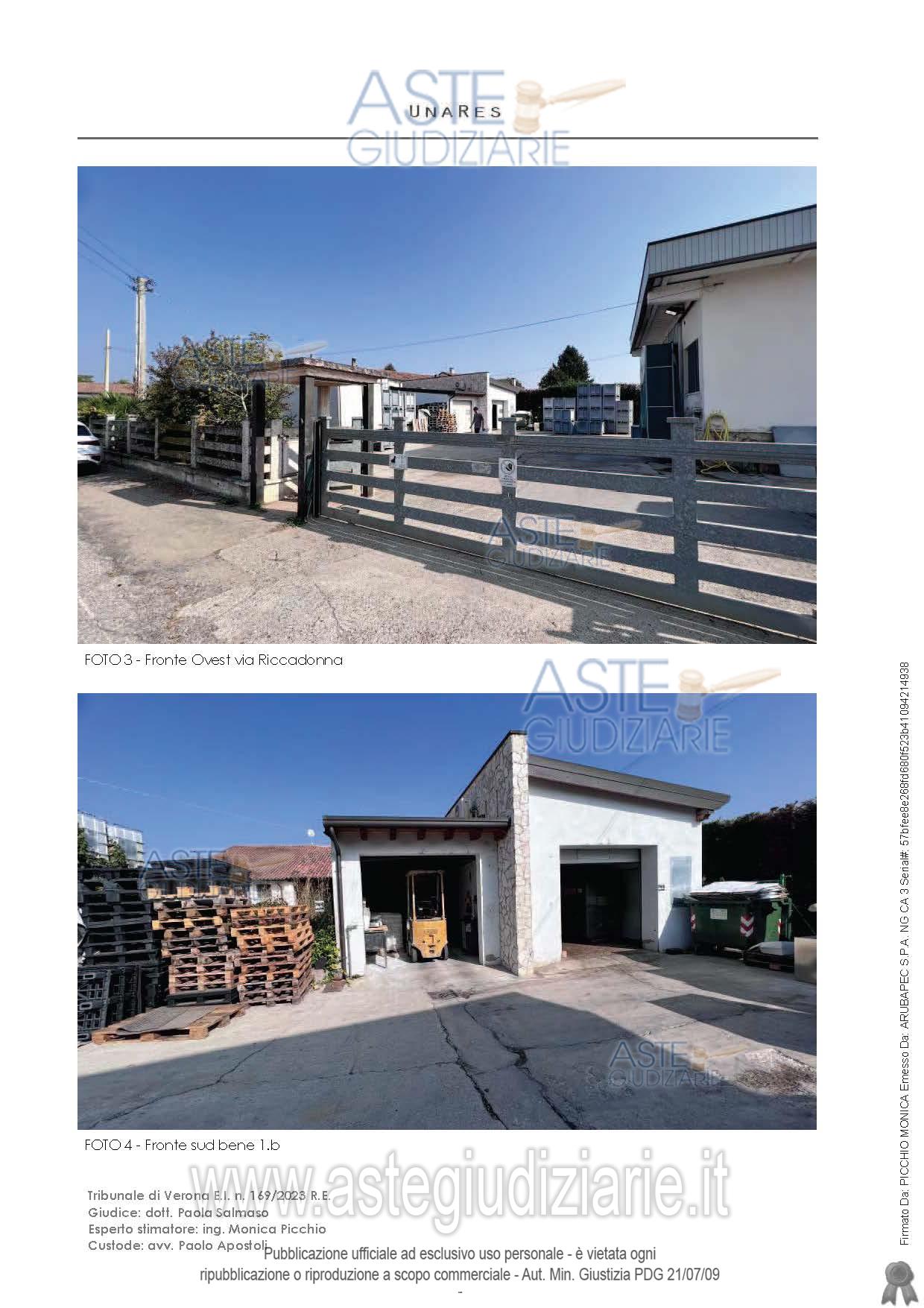 LOTTO UNICO - In Comune di Zevio, frazione Villabroggia, Via Riccadonna n. 1 e 9, piena proprietà di compendio immobiliare adibito alla lavorazione del pesce, in parte ad uno ed in parte a due piani fuori terra, formato da tre fabbricati, uno destinato a negozio ed uffici, uno destinato a laboratorio ed uno a deposito oltre aree esterne pertinenziali nonché di strada di accesso dalla pubblica via.