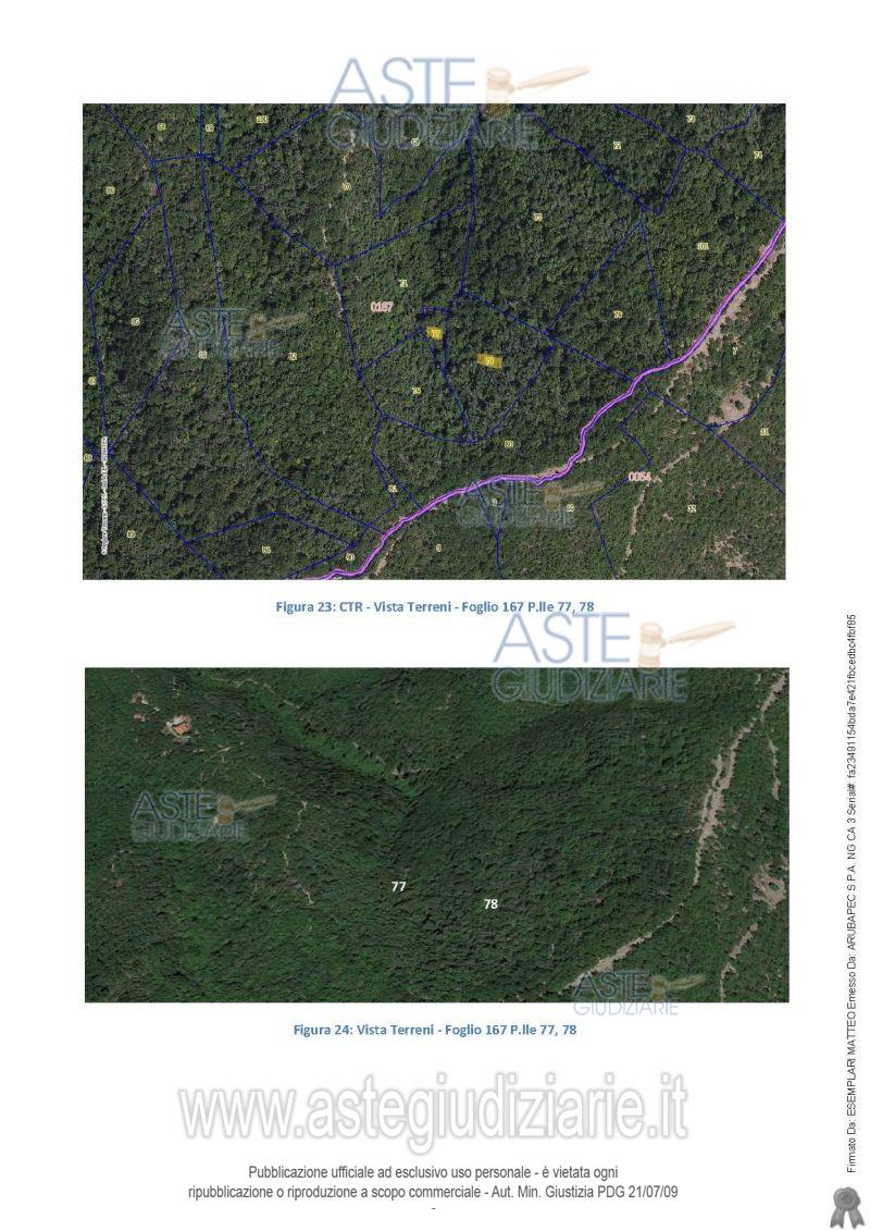 Fabbricato per civile abitazione al grezzo e non completato per tre piani fuori terra oltre ad un piano interrato, ubicato in posizione collinare e panoramica, composto da struttura portante in cemento armato e tamponature esterne con blocchi di laterizio, privo di serramenti ed infissi e mancante di finiture ed impianti, e numerosi appezzamenti di terreno agricolo di varia natura alcuni ubicati in prossimità del fabbricato delimitati da recinzione metallica, alcuni posti nelle immediate vicinanze dell'immobile lungo il versante collinare posto ad ovest/sud-ovest del fabbricato, altri situati lungo il versante posto ad est del fabbricato, alcuni terreni in zone limitrofe all'area del fabbricato ed altri, principalmente di natura boschiva, situati a distanze maggiori. In prossimità dell'edificio è presente anche un piccolo fabbricato rurale ex rimessa attrezzi diruto e parzialmente crollato. Accesso principale su viabilità molto dissestata da cancello posto a sud-est del fabbricato direttamente da strada pubblica non pavimentata e accesso secondario da cancello su strada sterrata di proprietà discendente lungo il versante est del fabbricato che si congiunge alla Strada Statale SS73. Superficie commerciale totale fabbricato non completato: mq. 871,90=. Superficie complessiva terreno agricolo: 19 ettari 27 are e 39 centiare.