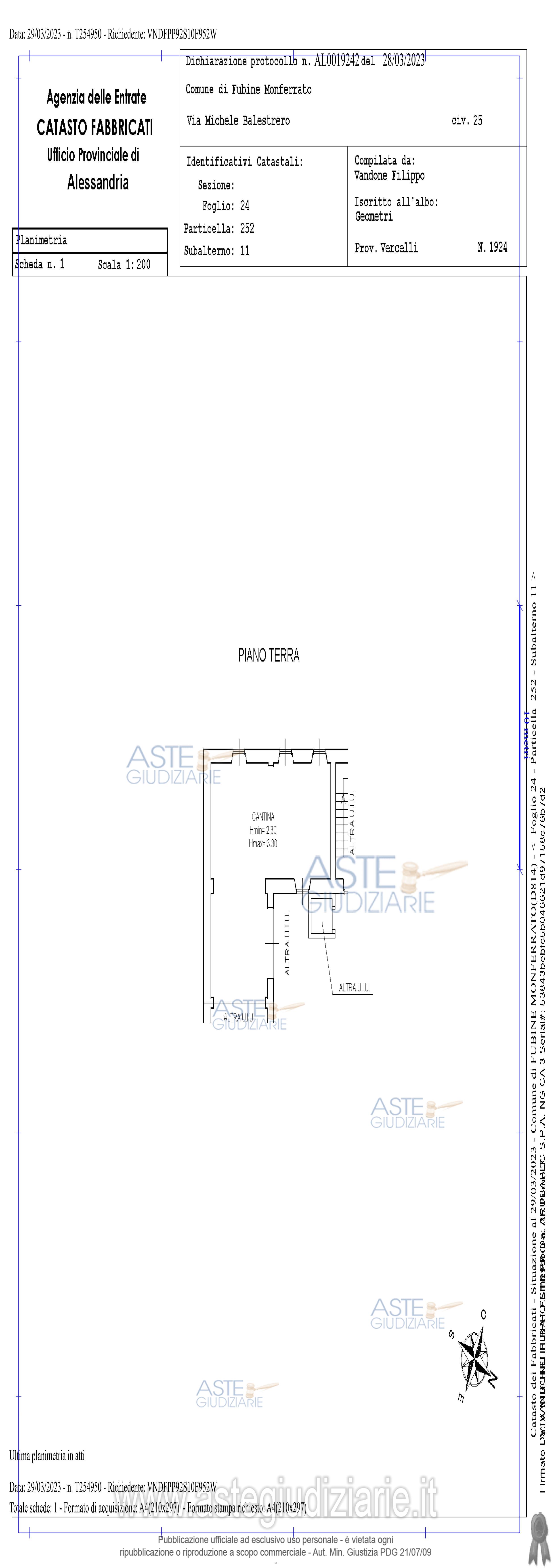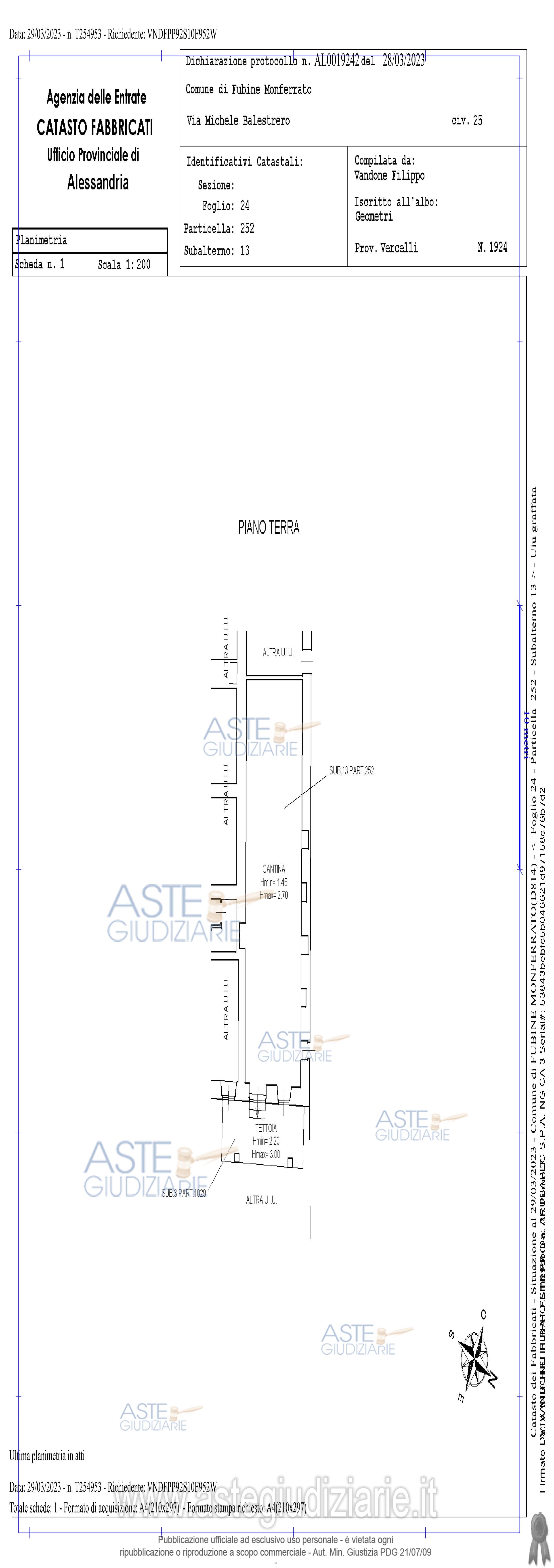 La presente scheda di vendita riporta integralmente informazioni e documenti pervenuti ufficialmente dal Ministero e dal professionista incaricato.