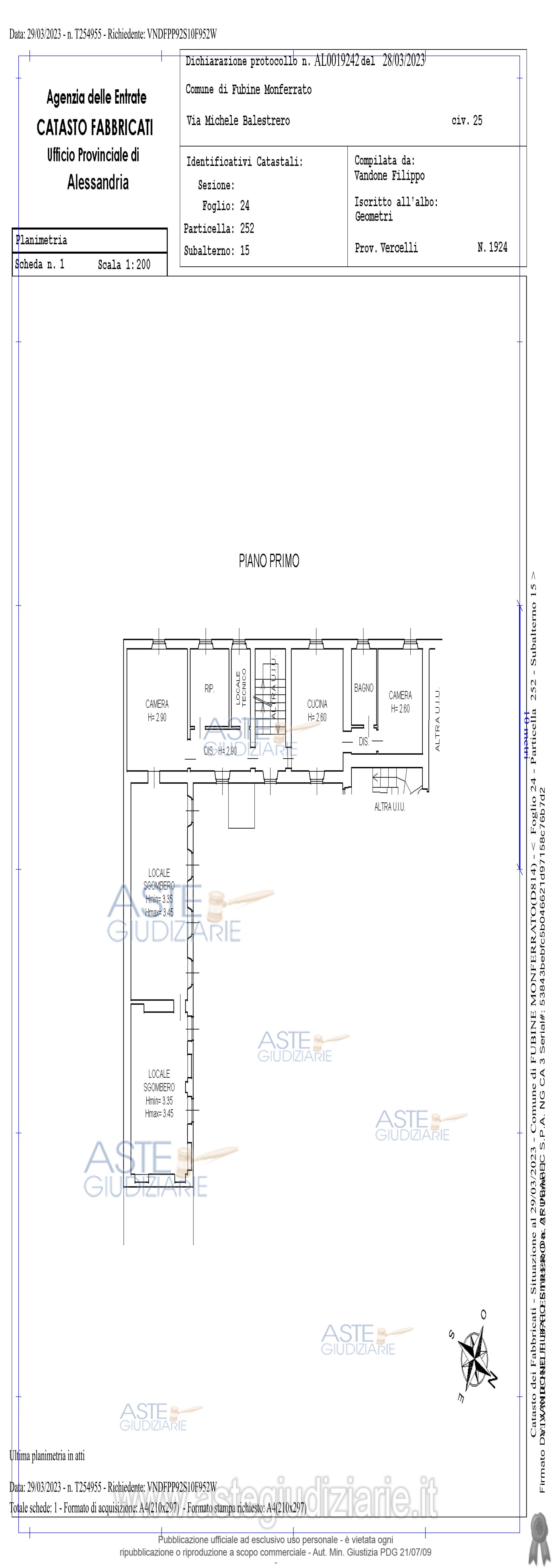 Ampio fabbricato con relativi accessori ed ampia corte, di vetusta costruzione, probabilmente risalente alla seconda metà del 1800, posto in Fubine Monferrato alla Via Michele Balestrero n. 25, con accesso secondario da Corso Aldo Porro n. 43 (SP 50); si sviluppa a tre piani fuori terra oltre a piani seminterrato ed ammezzati.
