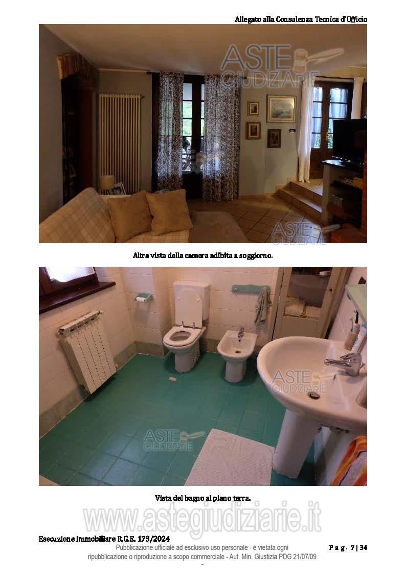 ABITAZIONE, composta al piano terreno (primo fuori terra, catastalmente seminterrato) da soggiorno, cucina, bagno, lavanderia, due portici, cantina, area cortilizia, al piano primo (secondo fuori terra, catastalmente piano terreno) da due camere, un bagno, un disimpegno e un balcone, al piano sottotetto (terzo fuori terra, catastalmente piano primo) da una camera e un bagno, BASSO FABBRICATO e TERRENO agricolo.