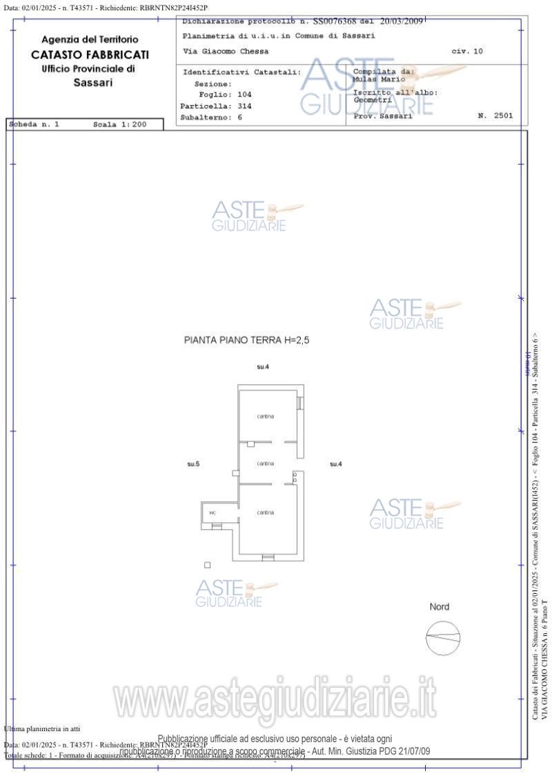 Attenzione: Non è dovuto alcun compenso (né a titolo di intermediazione, né per vedere l’immobile, né per ricevere istruzioni sulle modalità di presentazione dell’offerta, né a nessun altro titolo), se ci si rivolge a persone incaricate dal Tribunale (custode, professionista delegato, curatore, società incaricata di gestire la vendita). La pubblicità relativa a questo bene immobile, venduto dal Tribunale nella procedura indicata, potrebbe essere inserita su portali immobiliari, anche da altri soggetti non incaricati dal Tribunale. Se l’interessato all’acquisto si rivolge a questi ultimi, potrebbe essergli richiesto di pagare spese o compensi di mediazione o consulenza.