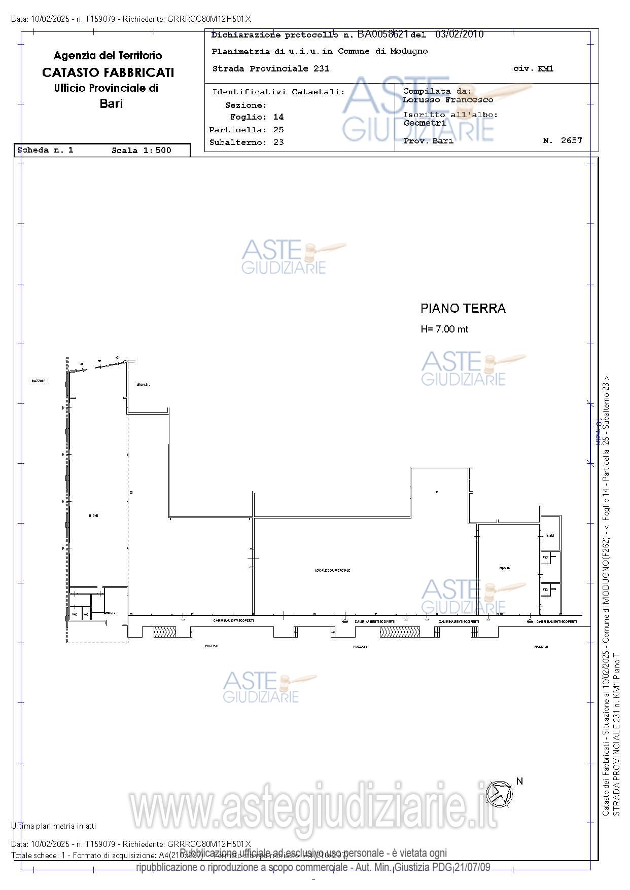 Lotto che si articola in un grande complesso commerciale (piano interrato, pianto terra) con palazzina autonoma adiacente (piano terra, piano primo), un fabbricato retrostante che funge da parcheggio multipiano su tre livelli più il parcheggio sul lastrico solare. Il lotto è circondato da un’area scoperta con viabilità con estensione complessiva di circa mq. 36.400 e una superficie massima coperta di circa mq. 13.900.