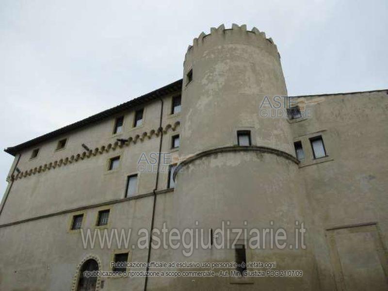 100/100 diritto di proprietà del Castello Medioevale, risalente al XIII secolo, sito nel centro storico della frazione di Cretone, Comune di Palombara Sabina (RM) con accesso da P.zza Nazionale nn. 11-12-13 è posto ai piani primo sottostrada, primo, secondo, terzo e quarto per una superficie complessiva lorda di circa 1.500 mq ed una cubatura di circa 6.000 mc, in Catasto Fabbricati del Comune di Palombara sabina (RM) al fg 43, part 370 sub. 502 (ex sub. 501 e 15), cat. D/8, rend € 24.000,00, Piazza Nazionale nn. 11, 12 e 13, piani S1, 1, 2, 3 e 4.Si precisa che il sub. 502 deriva dalla soppressione del sub. 501 pratica n. RM0621278 in atti dal 2.8.2006. Si evidenzia che l’immobile in questione è accatastato non come castello (A/9), bensì come D/8 -Fabbricati costruiti o adattati per speciali esigenze di una attività commerciale e non suscettibili di destinazione diversa senza radicali trasformazioni. Il castello di Cretone, noto anche come Palazzo Ducale, è ubicato presso l’estremità meridionale di piazza Nazionale. A nord dell’abitato, ai piedi dell’altura, sono presenti le Terme di Cretone, attive nella stagione estiva, con alcune piscine alimentate da sorgenti termominerali sulfuree. Il palazzo ha una pianta rettangolare con torre di guardia posta nello spigolo nord-ovest; esso si sviluppa su tre piani fuori terra ed un piano sminterrato, per una superficie complessiva lorda di circa 1.500 mq ed una cubatura di circa 6.000 mc. L’immobile è articolato su quattro piani fuori terra ed un piano seminterrato. Il piano rialzato, o piano terra, è composto da cinque vani, tre bagni, ingresso e androne, dal quale mediante un portone, situato sul lato meridionale del palazzo, si accede al giardino sui bastioni. Il piano nobile, o piano primo, è composto da un grande salone, uno studio con soppalco, sala pranzo, locale cucina, due bagni, due camere e un piccolo vano all’interno della torre. Proprio a questo piano sono presenti le caratteristiche più belle dell’edificio come: pavimenti in cotto originale dei vari locali; Nel salone la grande fascia perimetrale di raccordo tra le pareti ed il soffitto a cassettone, eseguita con colori a tempera, rappresenta composizioni di foglie d’acanto, aquile bicipite, leoni rampanti, uccelli rapaci, alcuni liberamente dipinti altri raffigurati in piccoli medaglioni. Tra il piano nobile ed il terzo vi è un piano secondo con un monolocale appositamente arredato per ospitare il custode. Le strutture orizzontali si distinguono a seconda della fase storica di appartenenza. La copertura è rivestita con piani e coppi. I prospetti esterni presentano segni tipici della tipologia del castello con portali e cornici in travertino e pietra arenaria. L’edificio ha una copertura a tetto spiovente con struttura lignea, detta struttura è tutt'ora puntellata in quanto le travi risultavano piuttosto vecchie ed inflesse, situazione ulteriormente aggravatasi a causa del mancato ripristino e della mancata manutenzione del tetto. Le strutture murarie e quelle lignee dei solai si trovano in discrete condizioni, fatta eccezione che per il tetto che necessita di rifacimento. L’immobile necessita di opere di manutenzione e si trova in stato di abbandono.Privo di impianto di riscaldamento e di ascensore. Impianti privi di certificazione e in carenti condizioni. Libero e nella disponibilità della procedura. Con decreto rep. n. 124 del 11/6/24 il Ministero della Cultura ha dichiarato l'immobile di interesse culturale particolarmente importante ex art. 10 co. 3, lett a) D.Lgs. n. 42 del 22/01/2004 e ss.mm.ii. Il tutto meglio descritto nell’elaborato peritale in atti e nell’avviso di vendita.