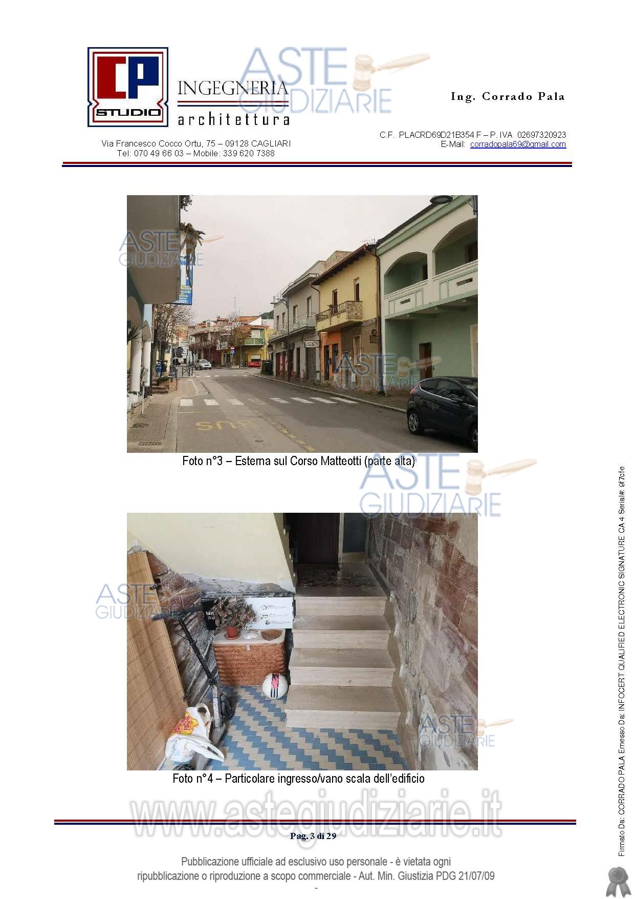 Quota pari all’intero del diritto di proprietà dell’appartamento al piano primo del maggior fabbricato con accesso dal Corso Matteotti n.16, composto da ingresso al piano terra, comune ad altra unità immobiliare e soggiorno con angolo cottura, disimpegno, due camere, due bagni, veranda e due balconi al piano primo.