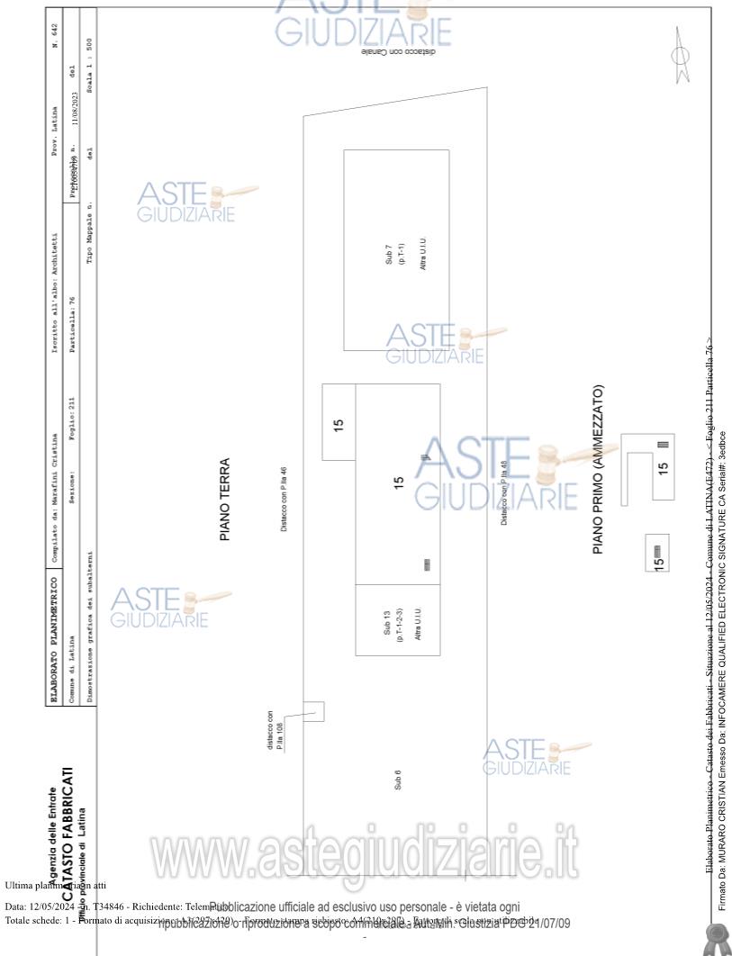 diritto di piena proprietà (1/1) di fabbricato artigianale ubicato a Latina (LT), S.S. 148Pontina n. 167, piano T-1, distinto nel Catasto Fabbricati del Comune di Latina al Foglio 211,Particella 76, Sub. 7, Zona cens. 2, Categoria C/3, Classe 1, Consistenza 1.127 mq.,Superficie catastale 1.142 mq., Superficie convenzionale 942,77 mq., Rendita €. 4.190,74,compresa quota di comproprietà di 924/1970 della corte comune, piano T, individuata inCatasto al Foglio 211, Particella 76, Sub. 6.