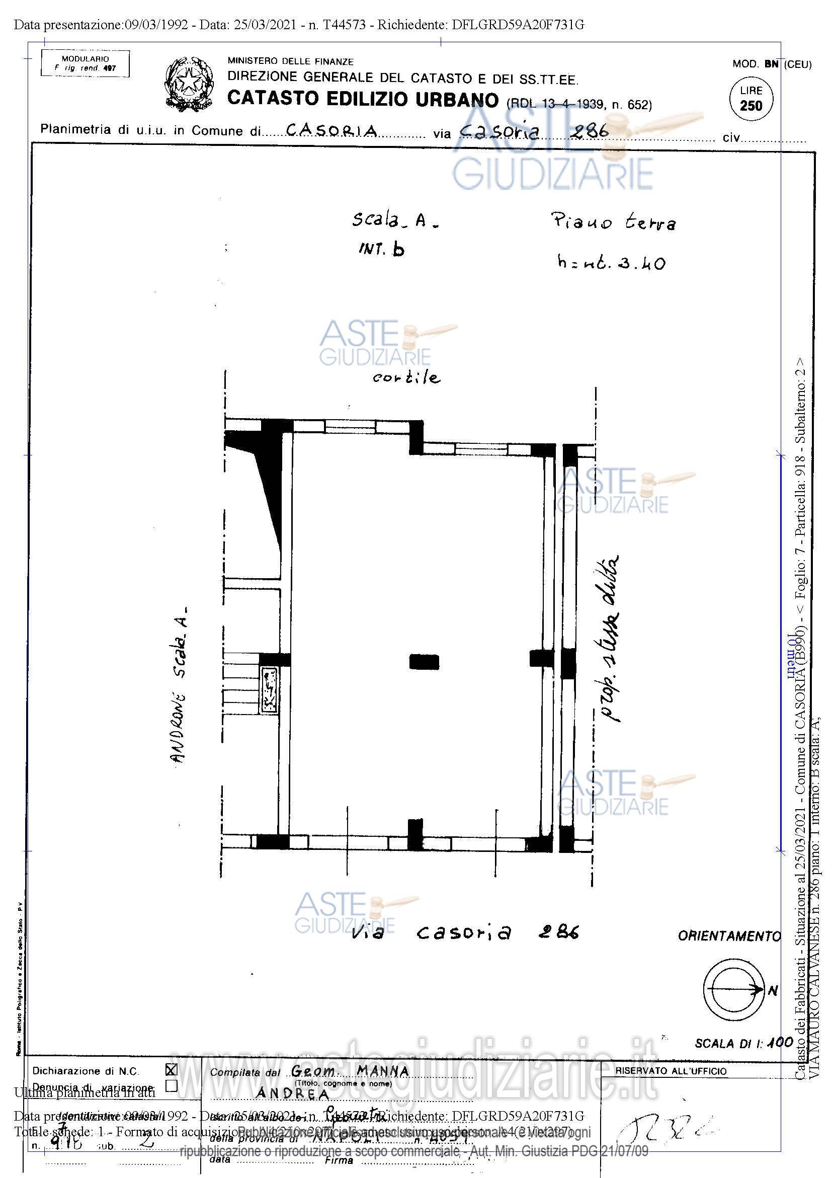DIRITTO DI SUPERFICIE del locale commerciale in Casoria alla Via Enrico Caruso N 286 mq 62 .Identificazione catastale: comune di Casoria, foglio 7, particella 918, sub 2. CATEGORIA C1