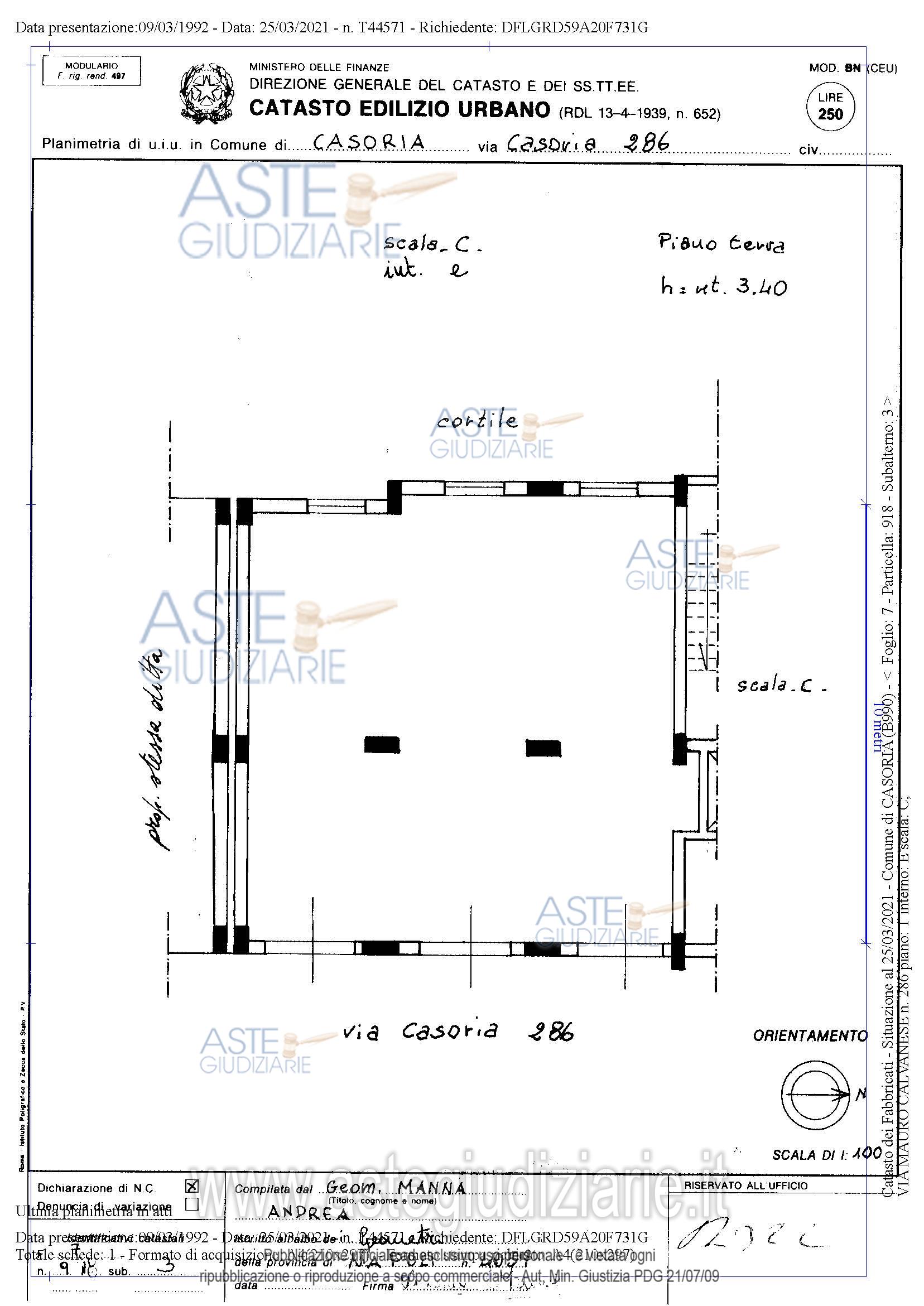 DIRITTO DI SUPERFICIE del locale commerciale in Casoria alla Via Enrico Caruso n. 286 di mq 96 . Identificazione catastale: Comune di Casoria, foglio 7, particella 918 sub. 3 CATEGORIA C1