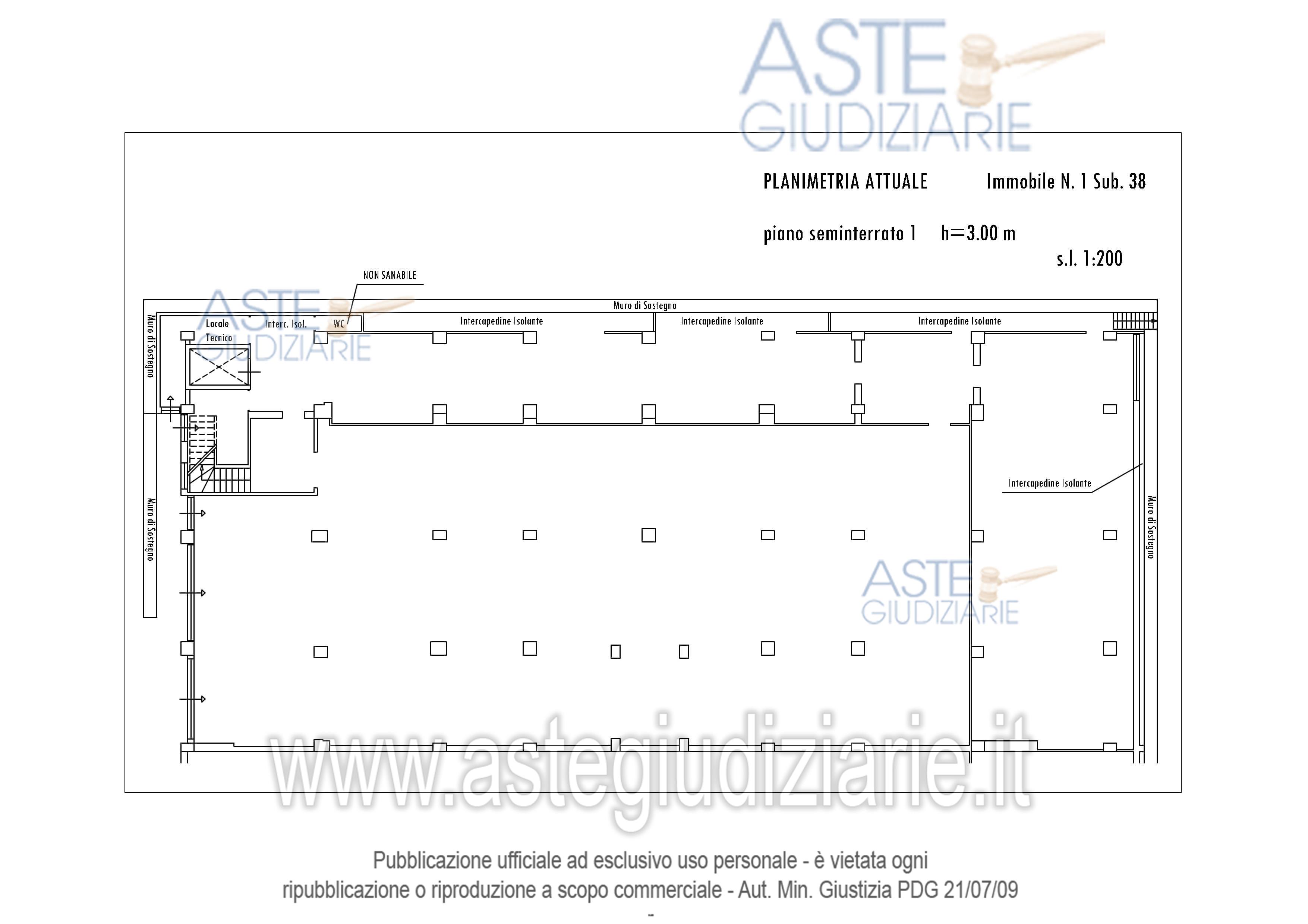 Magazzino/locale deposito al piano seminterrato. Sup. 779 mq. Libero. Negozio piano T - 600 mq.