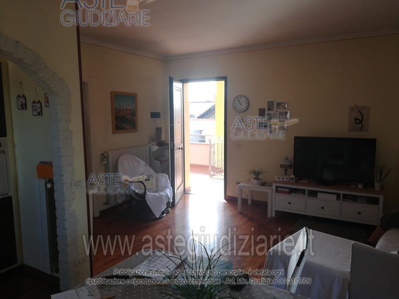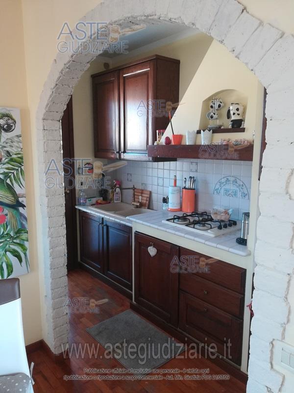 Appartamento composto da: ingresso-soggiorno, cucinotto, due camere, bagno, wc, oltre ampia terrazza e loggia sui lati est, sud e ovest ed altro terrazzo sul lato nord, con annessi in proprietàesclusiva la scala di accesso compresa dal pianerottolo del piano primo al piano attico (mq100,70 superficie convenzionale complessiva).