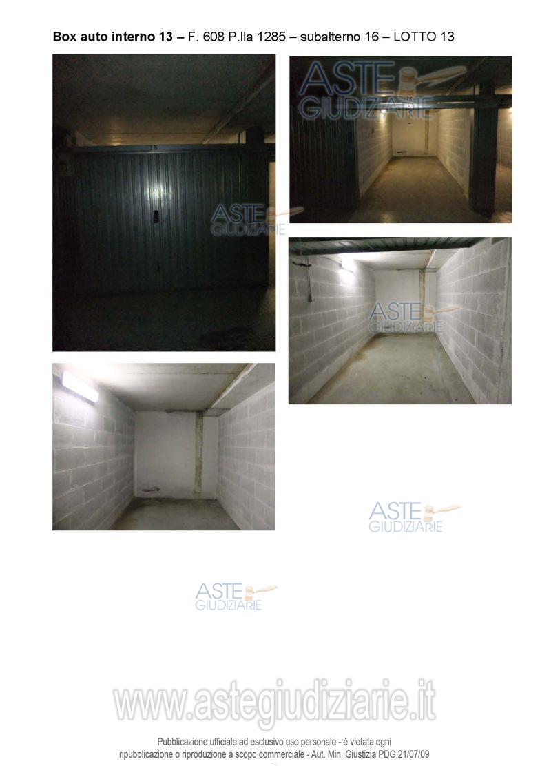 Proprietà piena ed esclusiva di box auto sito in comune di Roma (RM), quartiere "Collatino", municipio IV, via di Grotta di Gregna 23, piano S3, interno 13, posto all'interno di un edificio interrato con destinazione d'uso autorimessa, avente una superficie lorda di 15 mq. e un’altezza di circa 2,45 m., confinante con spazio di manovra sub 3, box auto interno 12 sub 15, box auto interno 14 sub 17, salvo altri, censito al catasto fabbricati del comune di Roma al foglio 608, particella 1285, subalterno 16, zona censuaria 5, categoria C6, classe 7, consistenza 15 mq., superficie catastale 15 mq., rendita euro 107,68 (bene n. 13 dell’elaborato peritale). Essendo stato l’edificio interrato nel quale ricade realizzato ai sensi della legge 24 marzo 1989 n. 122 (c.d. legge Tonioli), l’unità immobiliare dovrà essere destinata a pertinenza di altra unità immobiliare a uso abitativo sita nel comune di Roma e a tal fine è richiesto di allegare all’offerta di vendita apposita dichiarazione completa del titolo in virtù del quale si è divenuti titolari del diritto sull’unità immobiliare alla quale si intende asservire quella oggetto di eventuale aggiudicazione, redatta secondo il modello allegato all’ordinanza di vendita. L’unità immobiliare è nella disponibilità della parte esecutata e sarà liberato all’aggiudicazione su richiesta dell’aggiudicatario. Il tutto come meglio descritto nell’elaborato peritale in atti.