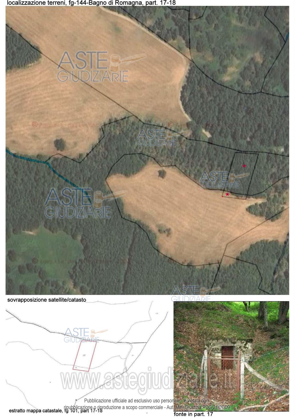 Complesso edilizio denominato “Ex Sanatorio di Acquapartita” composto da due strutture edilizie aggregate che si dispongono in tre corpi di fabbrica principali e comunicanti. Gran parte dell’edificio risulta “in corso di costruzione” incompiuto ed abbandonato. L’attuale destinazione d’uso, della porzione che risulta completata (ora anch’essa fortemente degradata), sia urbanistica che catastale è: “Scuole, laboratori scientifici - Costruiti o adattati per tale destinazione e non suscettibili di destinazione diversa senza radicali trasformazioni”. Oltre al terreno pertinenziale, è parte della proprietà un ampio parco che circonda il fabbricato, sul quale è presente un pozzo, già sondato, per lo sfruttamento di acqua termale la cui concessione (a durata trentennale), è stata richiesta ed ottenuta nell’anno 2015. Appezzamenti di terreni agricoli in loc. Bagno di Romagna e Verghereto su ciascuno dei quali si trova una fonte di acqua idonea all’utilizzo per consumo umano, il cui sfruttamento è stato concessionato fino alla data del 31/12/2026, rinnovabile.