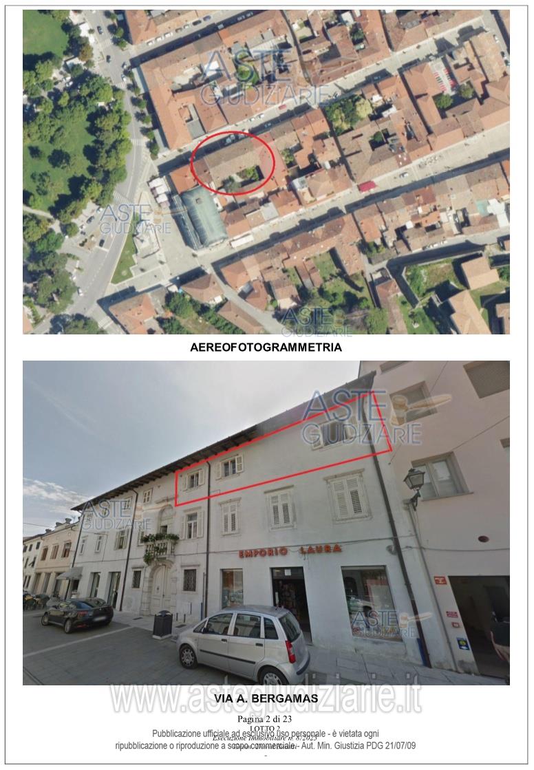 ufficio sito a GRADISCA D’ISONZO (GO) – Via A. Bergamas n. 8 (secondo piano), privo di ascensore, della superficie commerciale di circa 156,46 mq, per la quota di 1/1 di piena proprietà, composto da un disimpegno - ingresso, sette stanze di cui una con accesso a terrazzino, un anti w.c. ed un bagno; il contesto residenziale è stato realizzato in vecchissima data, pertanto il tutto si mantiene in un basso stato di manutenzione e conservazione, i materiali impiegati, gli impianti e le finiture sono del tipo economico. Sono presenti delle infiltrazioni di acqua piovana