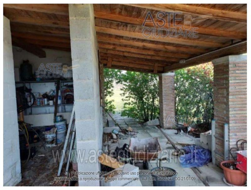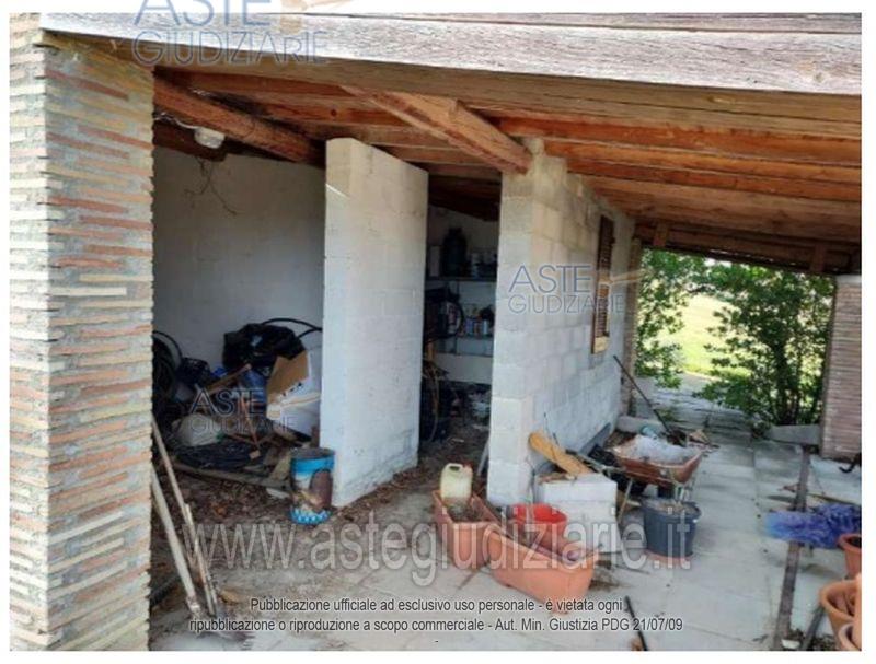 Bene n. 2 ManufattoDescrizione: Il manufatto posto sul lato Sud-Ovest del lotto ha attualmente una destinazione abitativa,cambiata abusivamente e non sanabile. La destinazione assentita da progetto è "locale di rimessaprodotti agricoli". Nel presente bene rientra una porzione del manufatto catastalmente individuatacome “garage”. L'immobile viene posto in vendita per il diritto di Proprietà (1/1).Dati catastali: NCEU del Comune di Civitaquana (PE) - Fg. 17, Part. 774, Sub. 3, Categoria C/6.Superficie convenzionale mq 31,36.