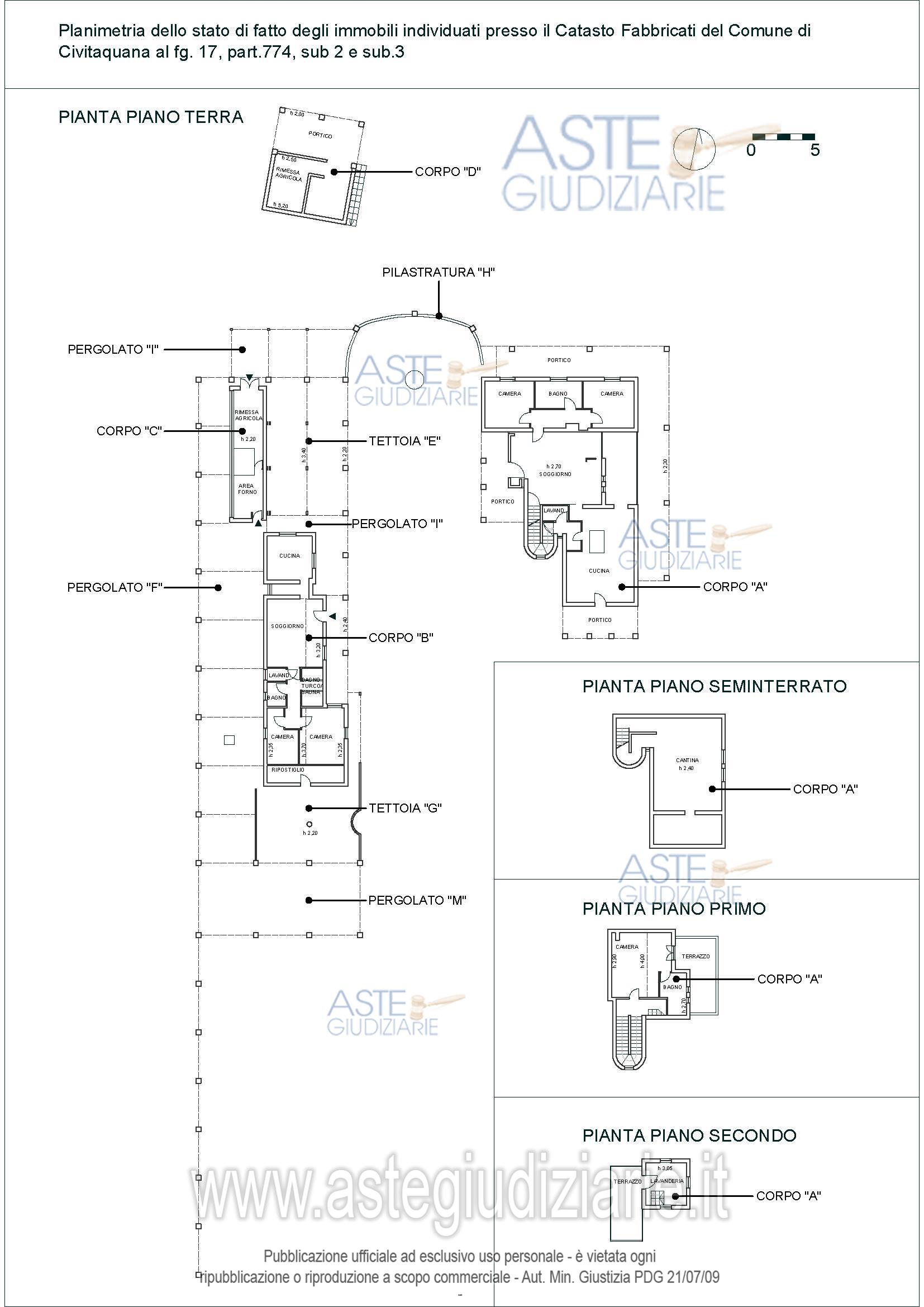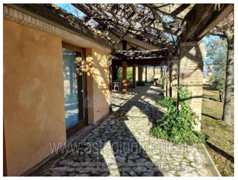 Bene n. 1 - Villa con giardinoDescrizione: La villa è composta da: piano seminterrato, ove è presente un vano cantina; piano terra,ove sono presenti: soggiorno, cucina, disimpegno, due camere e un bagno, nonchè un portico noncontinuo su tutti i lati del fabbricato; piano primo ove sono presenti una camera, bagno e terrazzo sullato Nord-Est; piano secondo, ove è presente una camera e un terrazzo lato Sud-Ovest. Nell'ampiogiardino circostante la villa si rinvengono: sul lato Sud-Ovest un manufatto costituito da un solo pianoterra, attualmente con destinazione abitativa, cambiata abusivamente e non sanabile (la destinazioneassentita da progetto è "locale di rimessa prodotti agricoli"); un fabbricato ad un piano ad usoforno/rimessa (abusivo non sanabile); un fabbricato ad un piano ad uso rimessa (abusivo nonsanabile); due tettoie e vari porticati.