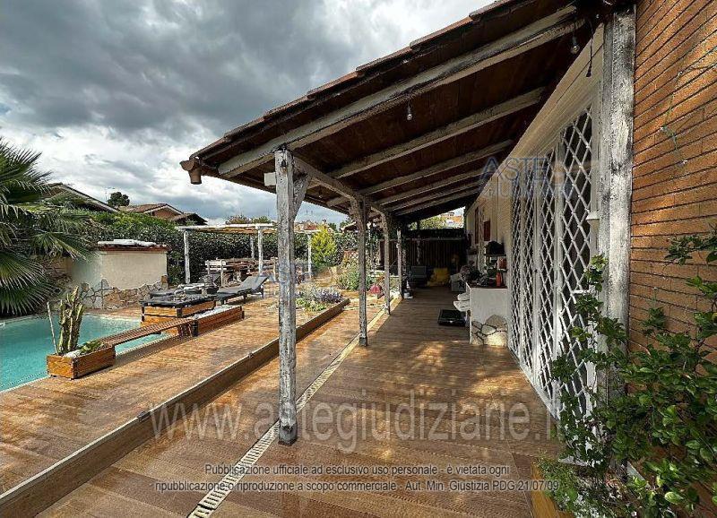 In Comune di Roma, Via Predoi n. 45, villino sviluppantesi sui piani terra e primo, con più appartamenti, per complessivi 11 vani catastali, con annessa corte esclusiva e piscina, con superficie convenzionale di circa mq. 320,50 e garage esterno Box in legno e muratura con copertura piana adiacente l’immobile principale, pavimentato e dotato di impianto elettrico, adattato a studio. situato nel giardino di proprietà della superficie convenzionale di circa mq. 28.